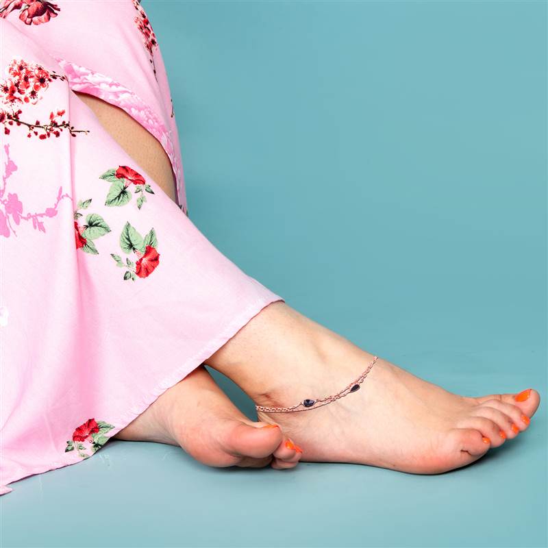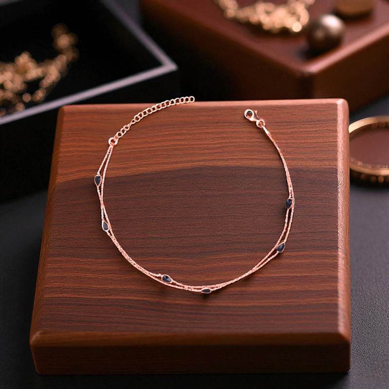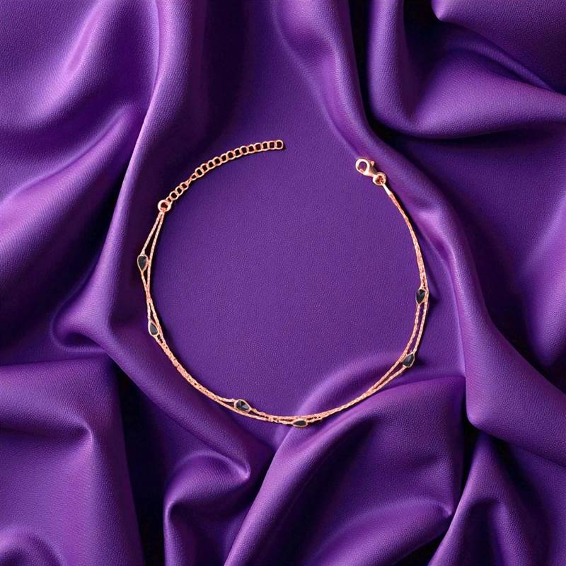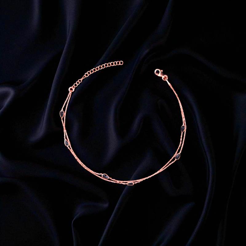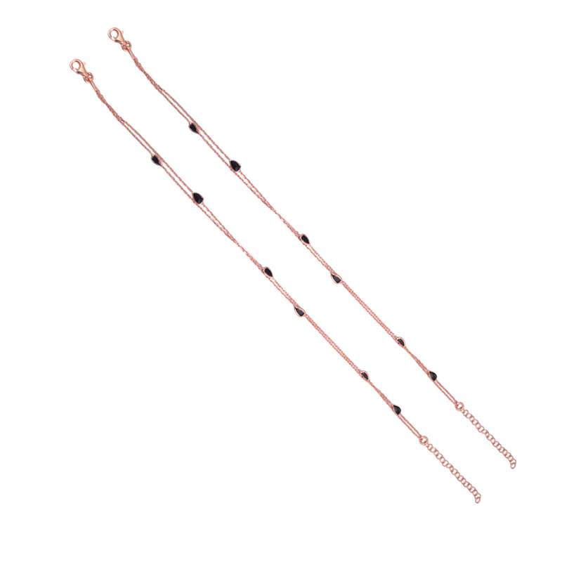 Add a touch of elegance to your every step with our Double Layered Black Droplet Rosegold Anklet 💕. Beautifully crafted from pure 925 sterling silver, this anklet is plated in a subtle rosegold finish that complements every skin tone. The delicate double-layered design with tiny black droplet charms creates a modern yet graceful look, perfect for both daily wear and special occasions. 🌙