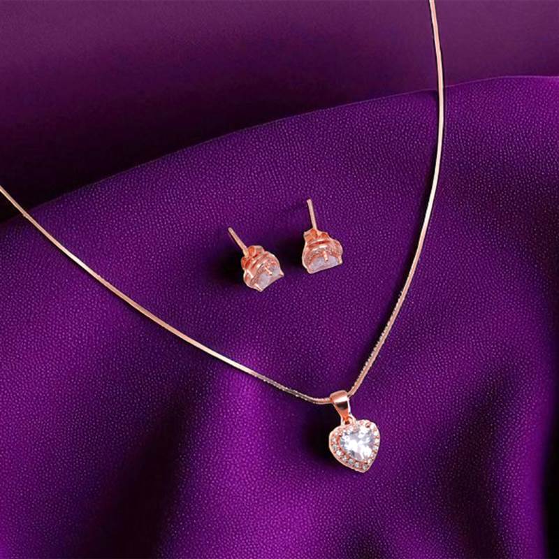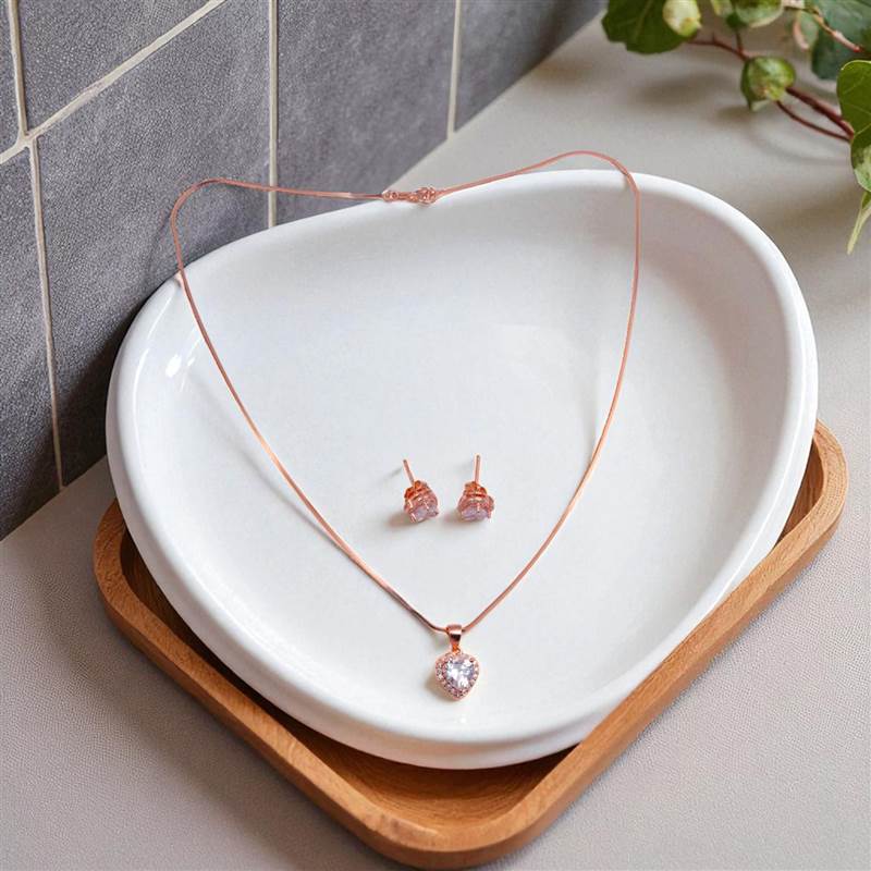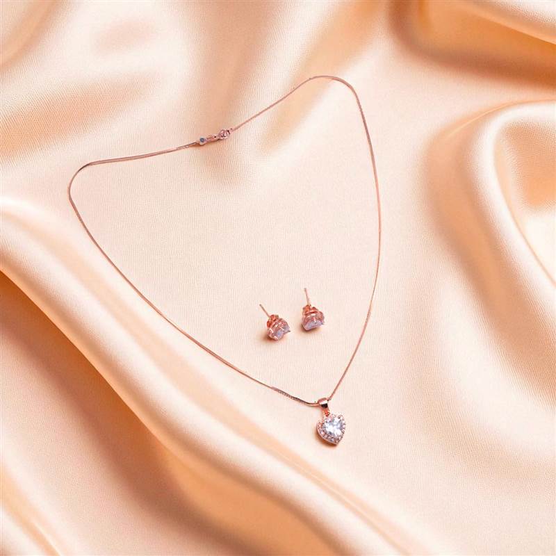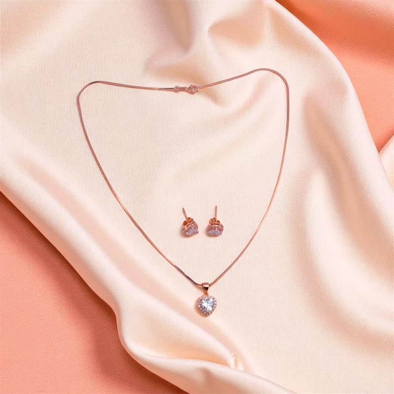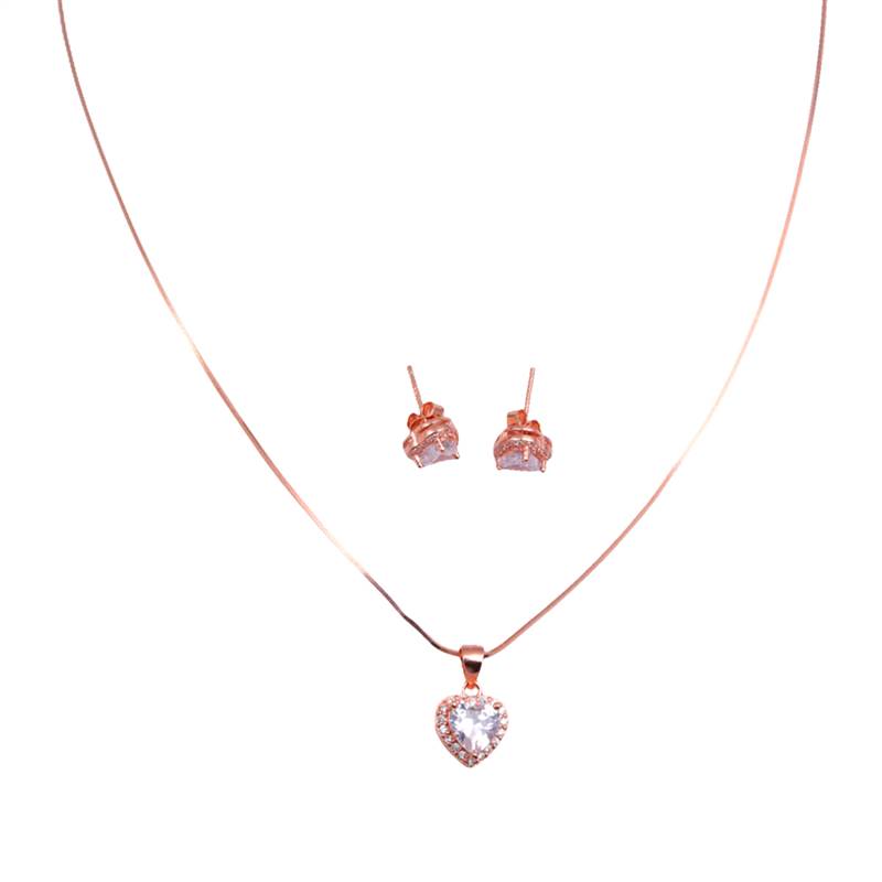 💖 Heart Rosegold Pendant Set with Earrings (Without Chain)
