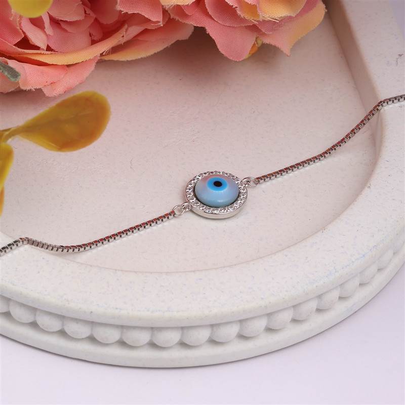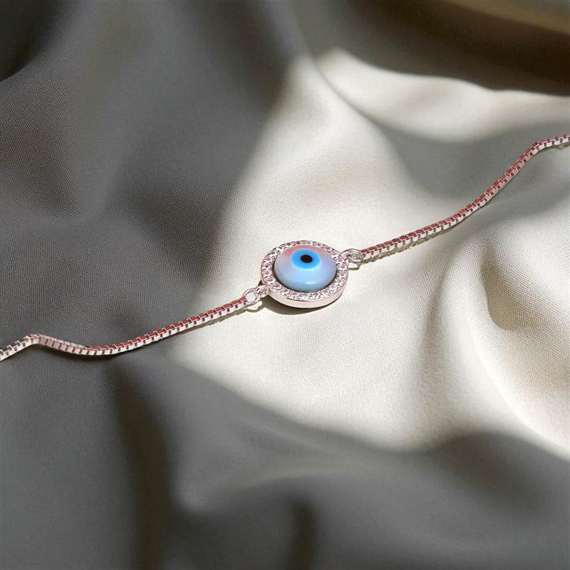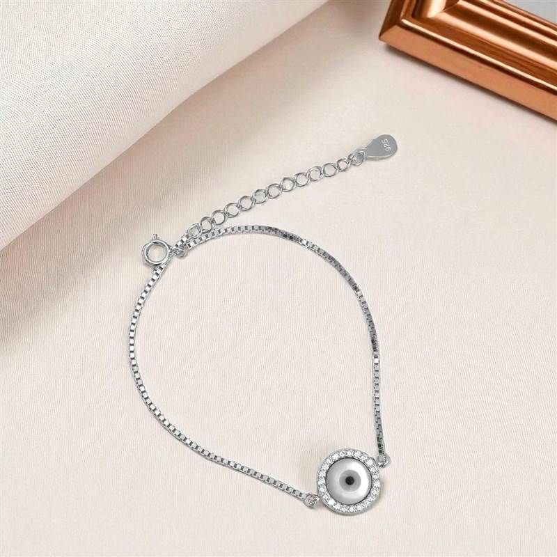 Round Evil Eye Silver Bracelet – Crafted in Pure 925 Silver (Length: 7.5 inches)