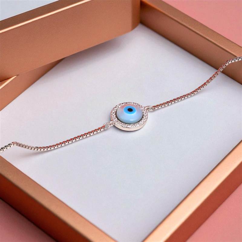 ✨ A timeless symbol of protection and elegance, our Round Evil Eye Silver Bracelet is beautifully handcrafted from pure 925 sterling silver. The iconic evil eye charm, set in a delicate round design, is believed to ward off negativity while adding a touch of grace to your everyday style 💎.